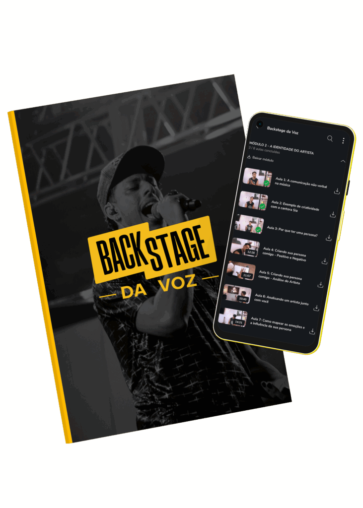 Você vai dar o primeiro passo: a criação da sua persona artística e o início da sua performance consciente. A construção de um show completo é o foco do curso completo Backstage da Voz, que é oferecido após essa etapa. Esse curso é o fundamento, e é essencial pra qualquer artista que deseja crescer com segurança no palco.